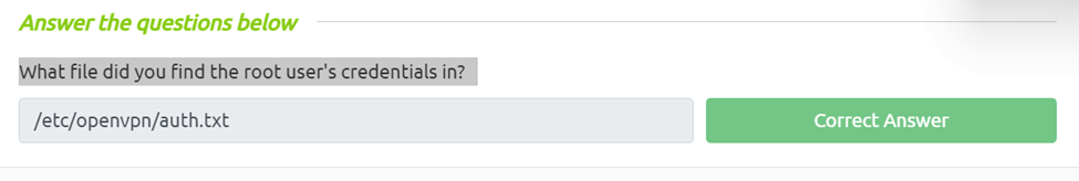 Again this is pretty basic we just need to cat /home/user/myvpn.ovpn and we can se a file that says auth user and password located at /etc/openvpn/auth.txt