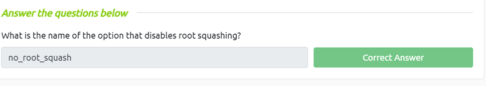 This is easy from our reading we can see the if the option is no_root_squashing using cat /etc/exports we know that root squashing is disabled and is vulnerable to several attacks.