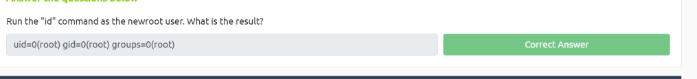 Run the “id” command as the newroot user. What is the result?