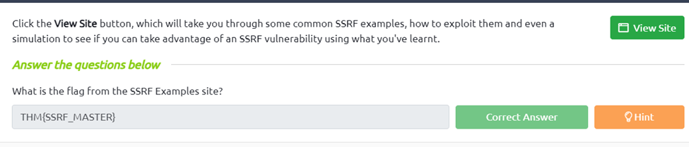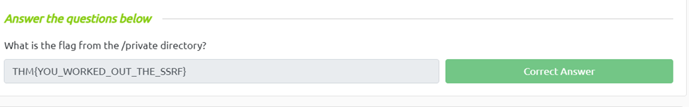 First we go to the visit site and read through the documentation. Now we get to the last page and we have a URL https://website.thm/item/2?server=api but we would like it to call data from our server at https://server.website.thm/flag?id=9. So the first thing we must do is eliminate the =api from the URL also the https:// form our server address. Next, we concatenate them to get https://website.thm/item/2?server= server.website.thm/flag?id=9 and if we run that we get a error 509 this is because its still trying to server the website after ours so got fix this we do “&x=” to prevent the remaining part of the path from being appended.