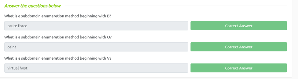 What is a subdomain enumeration method beginning with V?