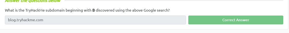 What is the TryHackMe subdomain beginning with B discovered using the above Google search?